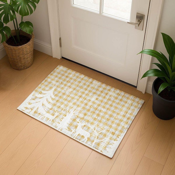 Mayfield Premium Machine Washable Abstract AMF1824 Gold 2 ft. x 3 ft. Area Rug