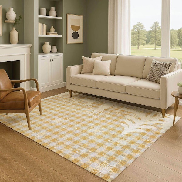 Mayfield Premium Machine Washable Abstract AMF1824 Gold 5 ft. x 7 ft. 6 in. Area Rug