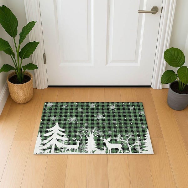 Mayfield Premium Machine Washable Abstract AMF1824 Green 2 ft. x 3 ft. Area Rug