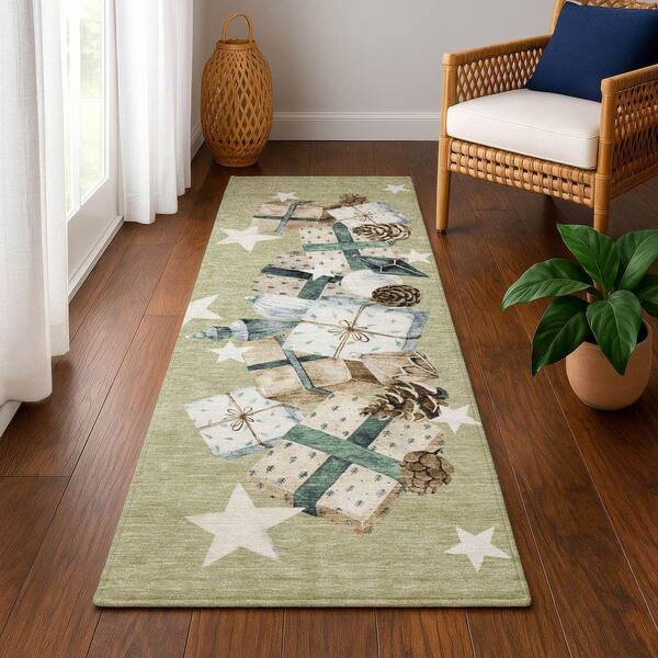 Mayfield Premium Machine Washable Abstract AMF1825 Aloe 2 ft. 3 in. x 7 ft. 6 in. Runner Rug