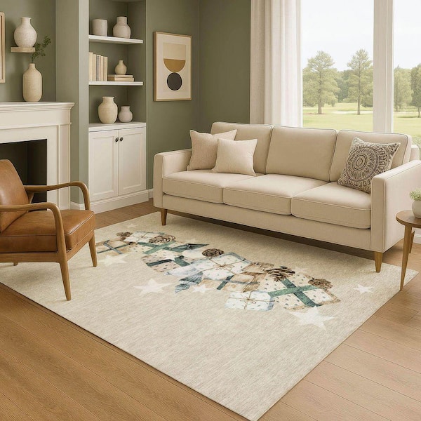 Mayfield Premium Machine Washable Abstract AMF1825 Beige 8 ft. x 10 ft. Area Rug