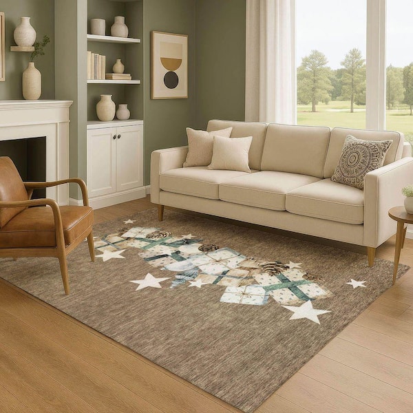 Mayfield Premium Machine Washable Abstract AMF1825 Brown 8 ft. x 10 ft. Area Rug