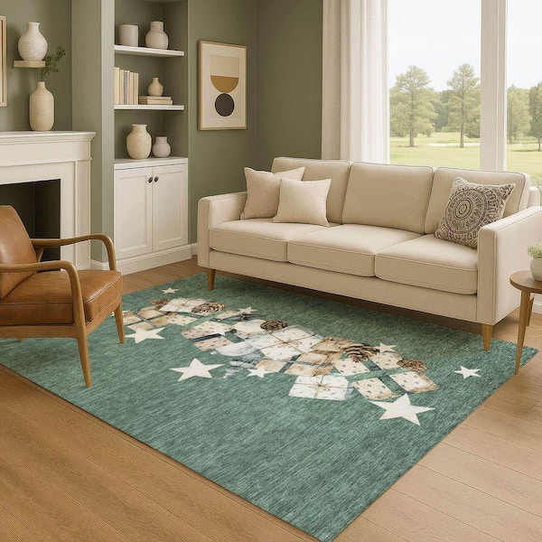 Mayfield Premium Machine Washable Abstract AMF1825 Seafoam 3 ft. x 5 ft. Area Rug