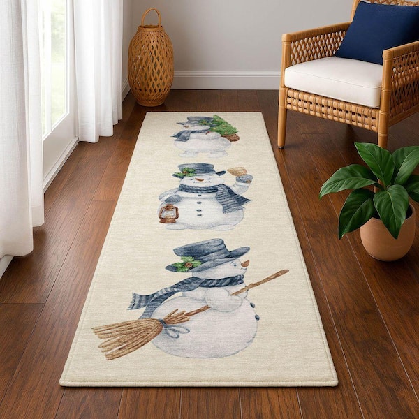 Mayfield Premium Machine Washable Abstract AMF1826 Ivory 2 ft. 3 in. x 7 ft. 6 in. Runner Rug