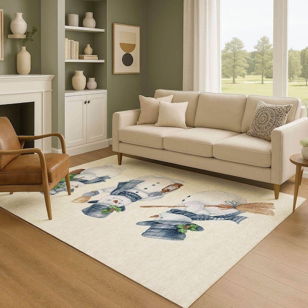 Mayfield Premium Machine Washable Abstract AMF1826 Ivory 9 ft. x 12 ft. Area Rug