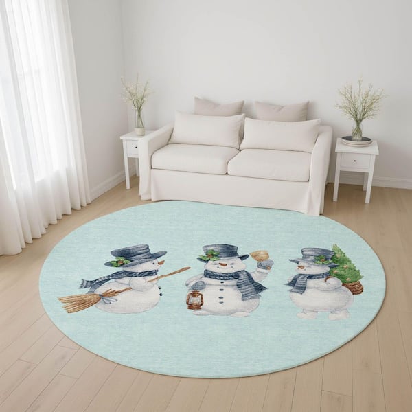Mayfield Premium Machine Washable Abstract AMF1826 Sky 8 ft. x 8 ft. Round Rug