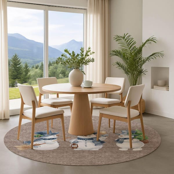 Mayfield Premium Machine Washable Abstract AMF1826 Taupe 8 ft. x 8 ft. Round Rug
