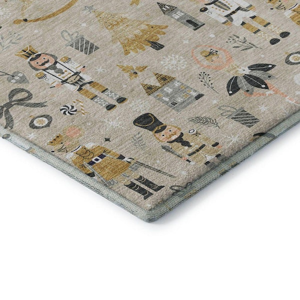 Mayfield Premium Machine Washable Abstract AMF1827 Beige 3 ft. x 4 ft. Area Rug