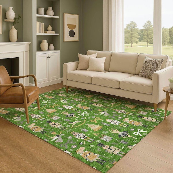Mayfield Premium Machine Washable Abstract AMF1827 Green 5 ft. x 7 ft. 6 in. Area Rug
