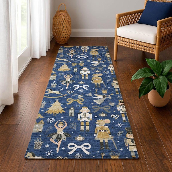 Mayfield Premium Machine Washable Abstract AMF1827 Navy 2 ft. 3 in. x 7 ft. 6 in. Runner Rug