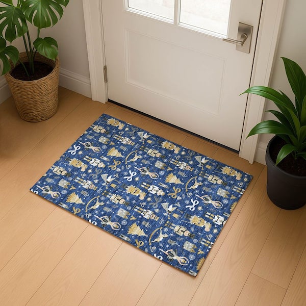 Mayfield Premium Machine Washable Abstract AMF1827 Navy 2 ft. x 3 ft. Area Rug