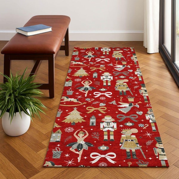 Mayfield Premium Machine Washable Abstract AMF1827 Red 2 ft. 3 in. x 7 ft. 6 in. Runner Rug