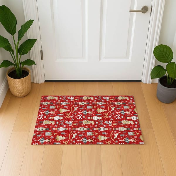 Mayfield Premium Machine Washable Abstract AMF1827 Red 2 ft. x 3 ft. Area Rug