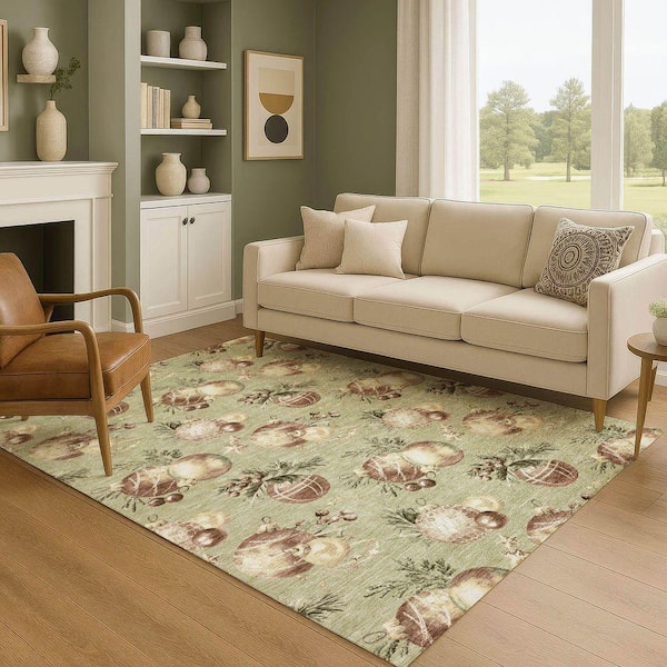 Mayfield Premium Machine Washable Abstract AMF1828 Aloe 8 ft. x 10 ft. Area Rug