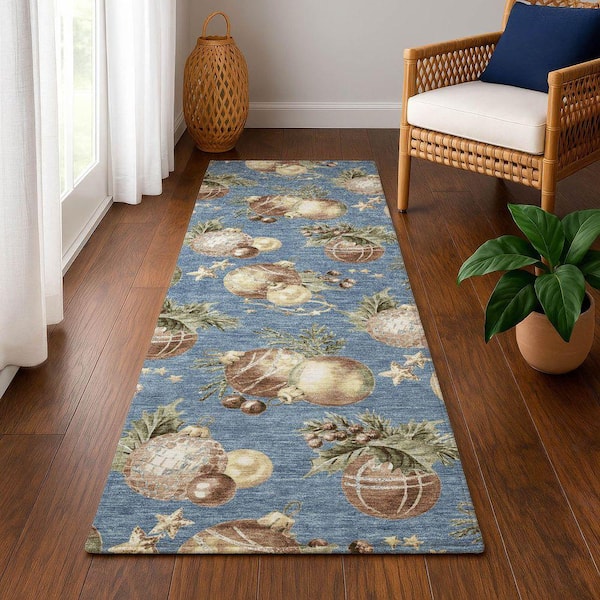 Mayfield Premium Machine Washable Abstract AMF1828 Denim 2 ft. 3 in. x 7 ft. 6 in. Runner Rug