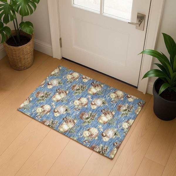 Mayfield Premium Machine Washable Abstract AMF1828 Denim 2 ft. x 3 ft. Area Rug