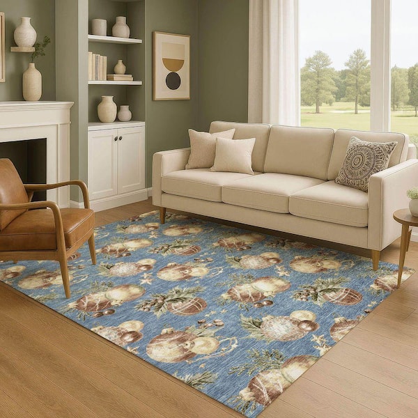 Mayfield Premium Machine Washable Abstract AMF1828 Denim 3 ft. x 4 ft. Area Rug