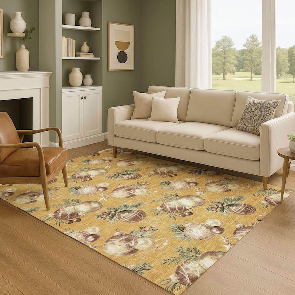 Mayfield Premium Machine Washable Abstract AMF1828 Gold 10 ft. x 14 ft. Area Rug