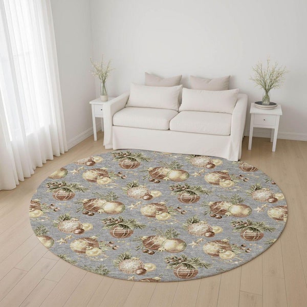 Mayfield Premium Machine Washable Abstract AMF1828 Gray 8 ft. x 8 ft. Round Rug