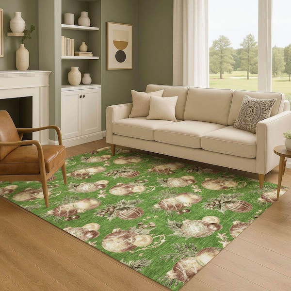 Mayfield Premium Machine Washable Abstract AMF1828 Green 5 ft. x 7 ft. 6 in. Area Rug