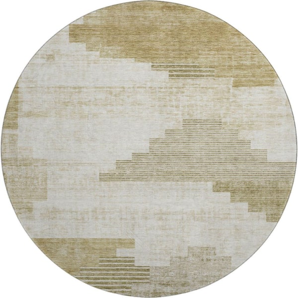 Mayfield Premium Machine Washable Abstract AMF1829 Beige 8 ft. x 8 ft. Round Rug
