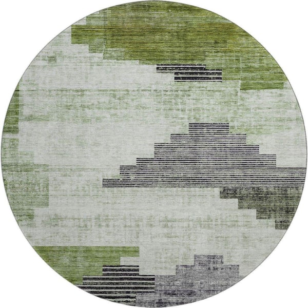 Mayfield Premium Machine Washable Abstract AMF1829 Fern 8 ft. x 8 ft. Round Rug