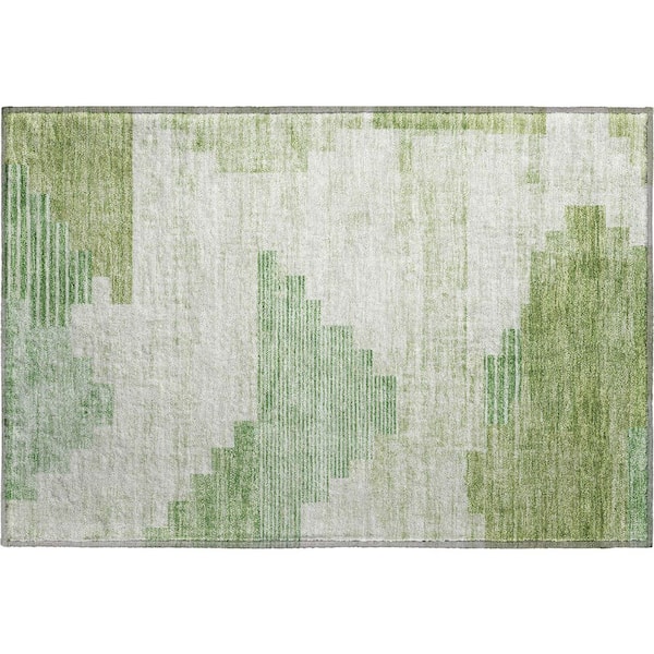 Mayfield Premium Machine Washable Abstract AMF1829 Sage 2 ft. x 3 ft. Area Rug