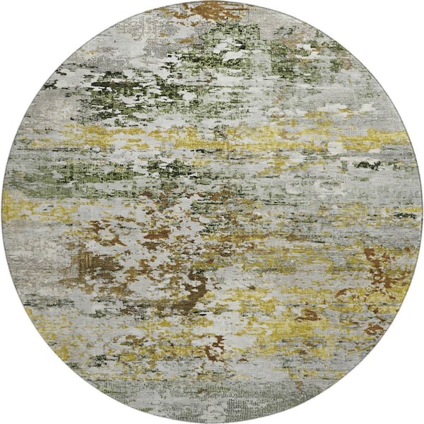 Mayfield Premium Machine Washable Abstract AMF1830 Gold 8 ft. x 8 ft. Round Rug
