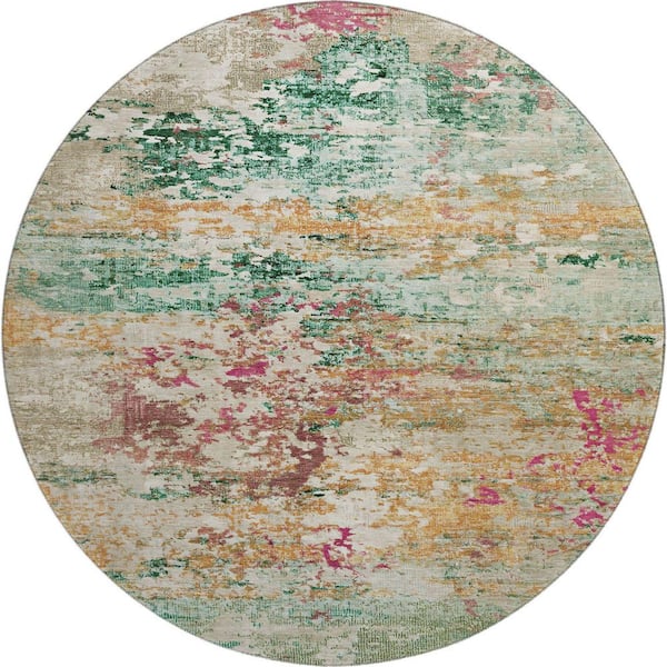 Mayfield Premium Machine Washable Abstract AMF1830 Orange 8 ft. x 8 ft. Round Rug