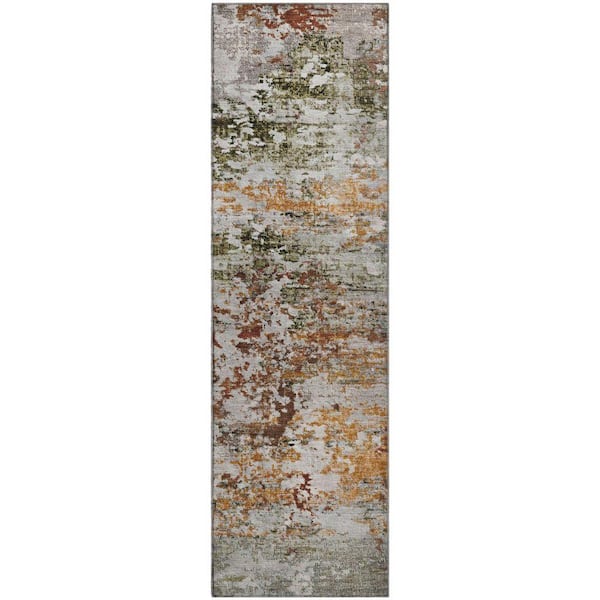 Mayfield Premium Machine Washable Abstract AMF1830 Terracotta 2 ft. 3 in. x 7 ft. 6 in. Runner Rug