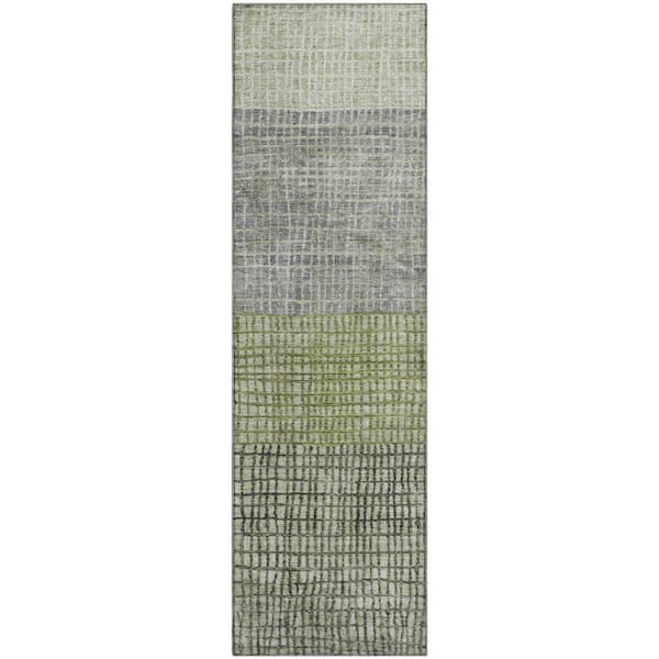 Mayfield Premium Machine Washable Abstract AMF1831 Aloe 2 ft. 3 in. x 7 ft. 6 in. Runner Rug