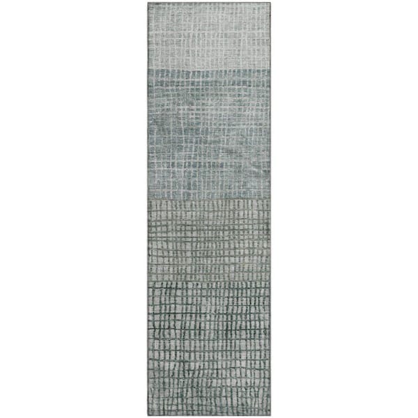 Mayfield Premium Machine Washable Abstract AMF1831 Aqua 2 ft. 3 in. x 7 ft. 6 in. Runner Rug