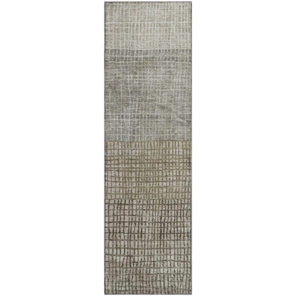 Mayfield Premium Machine Washable Abstract AMF1831 Taupe 2 ft. 3 in. x 7 ft. 6 in. Runner Rug
