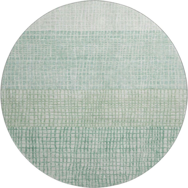 Mayfield Premium Machine Washable Abstract AMF1831 Teal 8 ft. x 8 ft. Round Rug