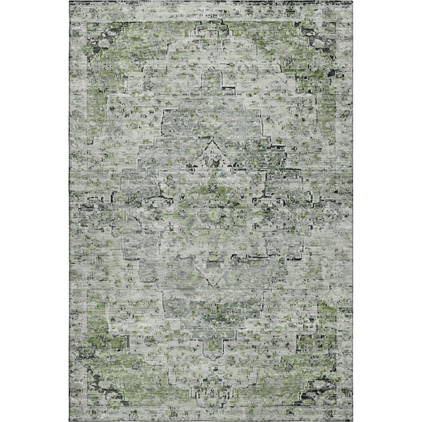 Mayfield Premium Machine Washable Abstract AMF1832 Aloe 3 ft. x 5 ft. Area Rug