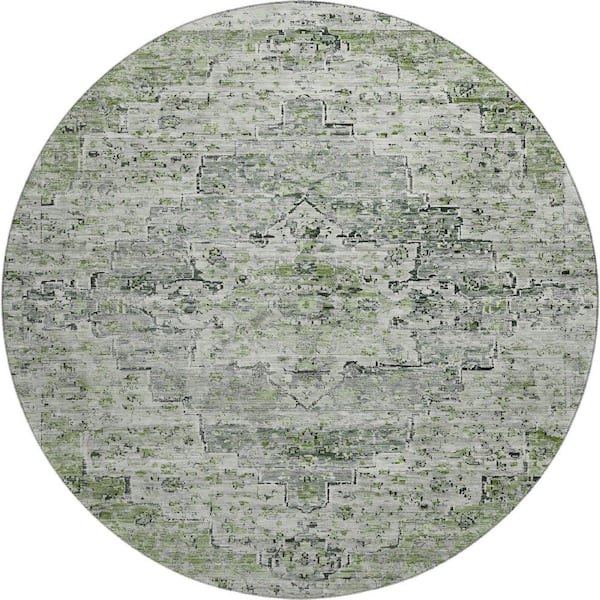 Mayfield Premium Machine Washable Abstract AMF1832 Aloe 8 ft. x 8 ft. Round Rug