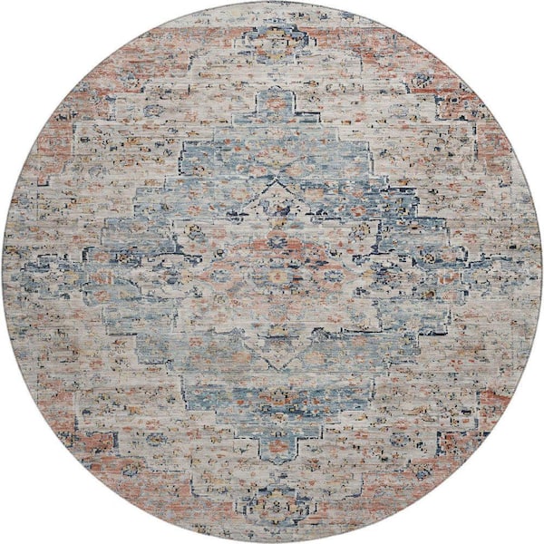 Mayfield Premium Machine Washable Abstract AMF1832 Beige 8 ft. x 8 ft. Round Rug