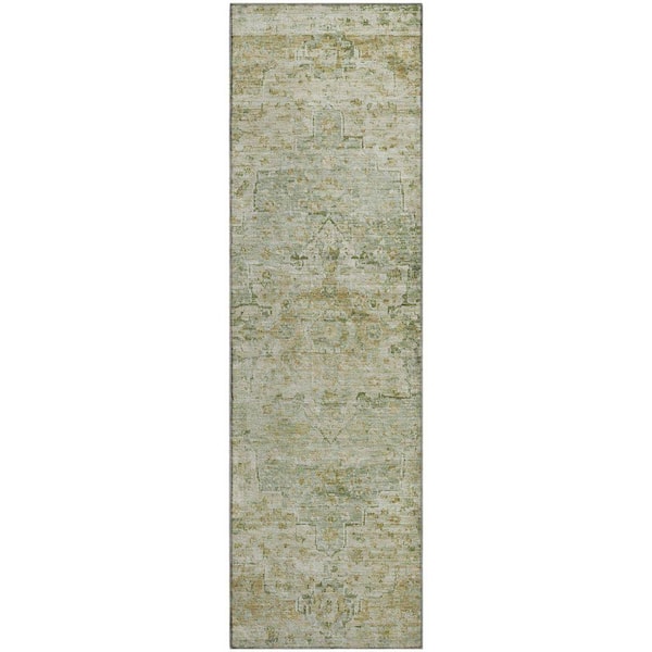 Mayfield Premium Machine Washable Abstract AMF1832 Sage 2 ft. 3 in. x 7 ft. 6 in. Runner Rug