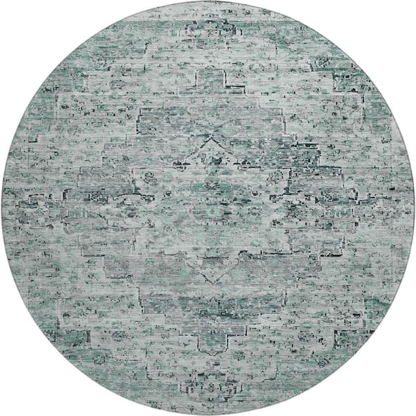 Mayfield Premium Machine Washable Abstract AMF1832 Teal 8 ft. x 8 ft. Round Rug