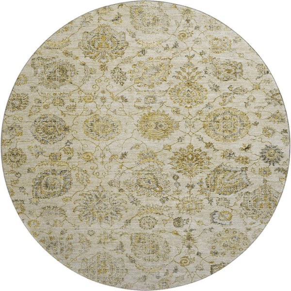 Mayfield Premium Machine Washable Abstract AMF1833 Beige 8 ft. x 8 ft. Round Rug