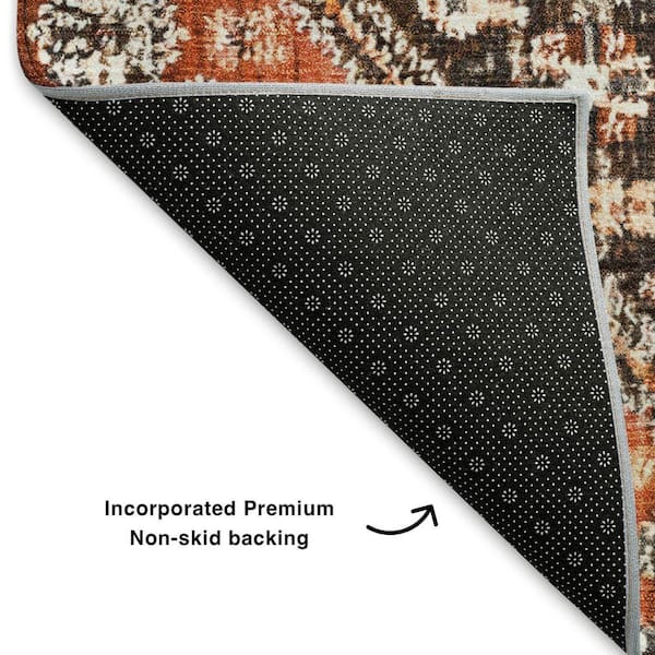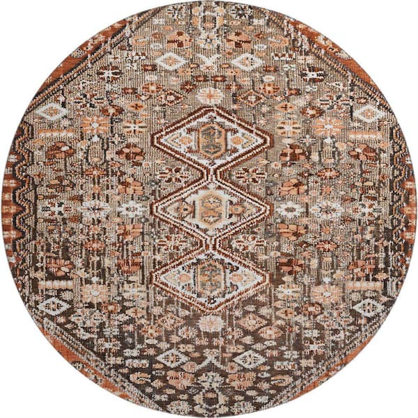 Mayfield Premium Machine Washable Abstract AMF1834 Fudge 8 ft. x 8 ft. Round Rug