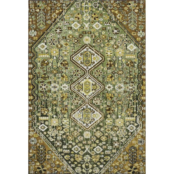 Mayfield Premium Machine Washable Abstract AMF1834 Olive 10 ft. x 14 ft. Area Rug