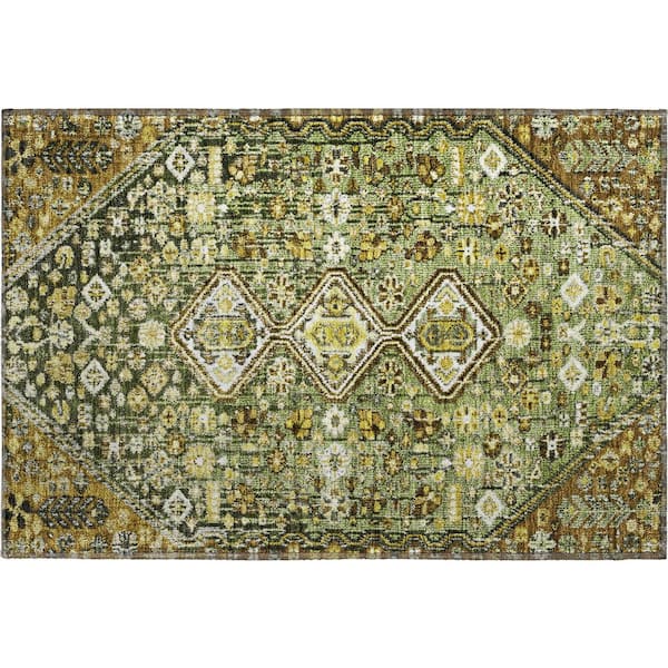 Mayfield Premium Machine Washable Abstract AMF1834 Olive 2 ft. x 3 ft. Area Rug