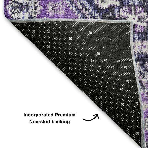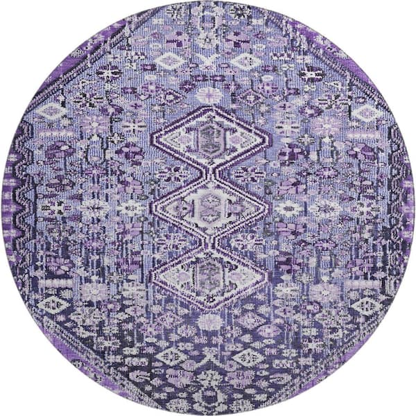 Mayfield Premium Machine Washable Abstract AMF1834 Purple 8 ft. x 8 ft. Round Rug