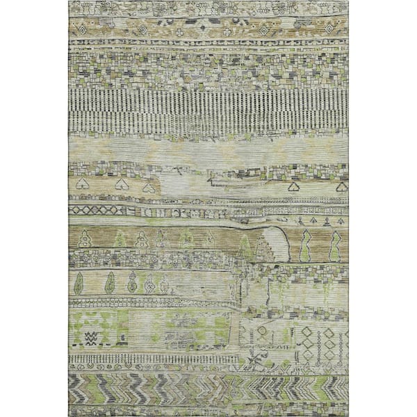 Mayfield Premium Machine Washable Abstract AMF1835 Beige 3 ft. x 5 ft. Area Rug