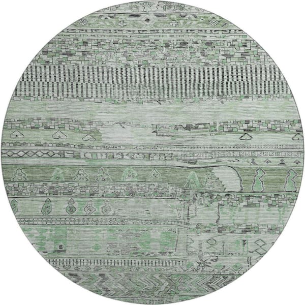 Mayfield Premium Machine Washable Abstract AMF1835 Sage 8 ft. x 8 ft. Round Rug
