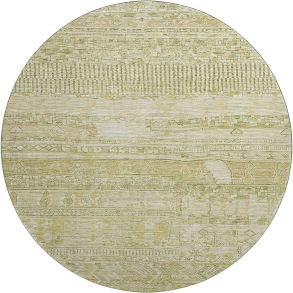 Mayfield Premium Machine Washable Abstract AMF1835 Tan 8 ft. x 8 ft. Round Rug
