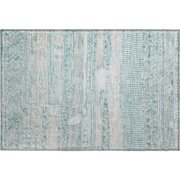 Mayfield Premium Machine Washable Abstract AMF1835 Teal 2 ft. x 3 ft. Area Rug