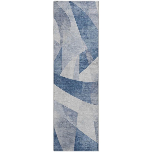 Mayfield Premium Machine Washable Abstract AMF1836 Denim 2 ft. 3 in. x 7 ft. 6 in. Runner Rug
