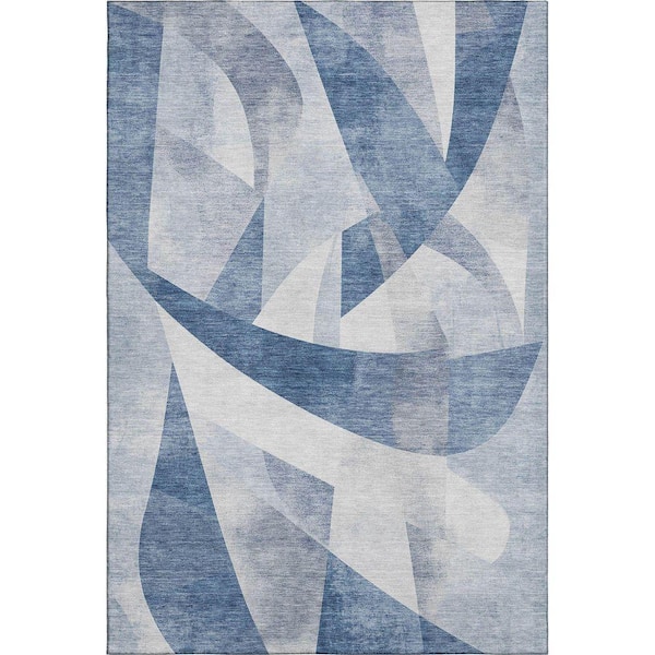 Mayfield Premium Machine Washable Abstract AMF1836 Denim 8 ft. x 10 ft. Area Rug